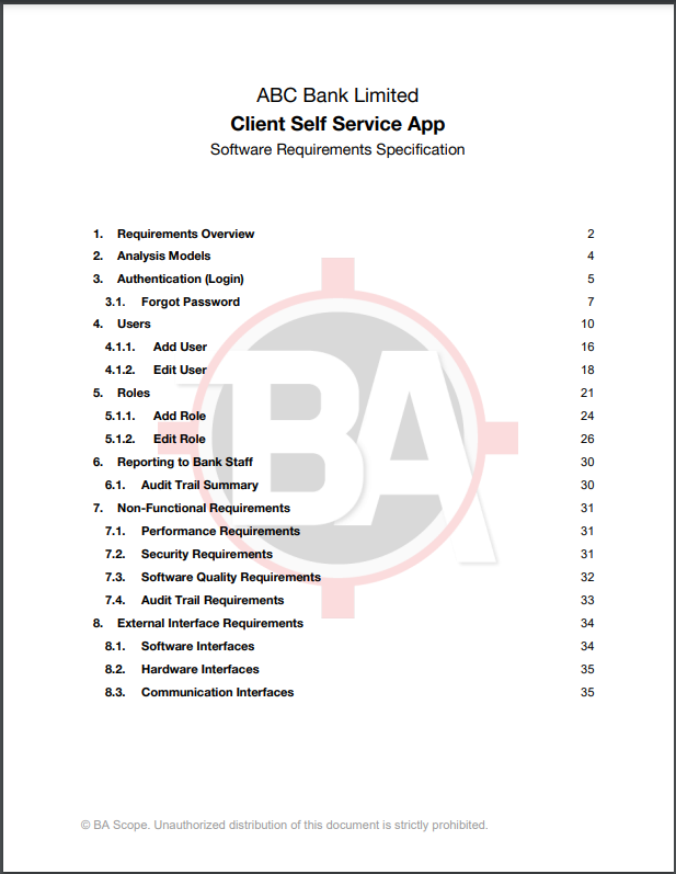 - Start Creating the SRS with the help of the information that’s collected as part of the Elicitation and Analysis phases. Follow the standard template for SRS that should specify the following details: